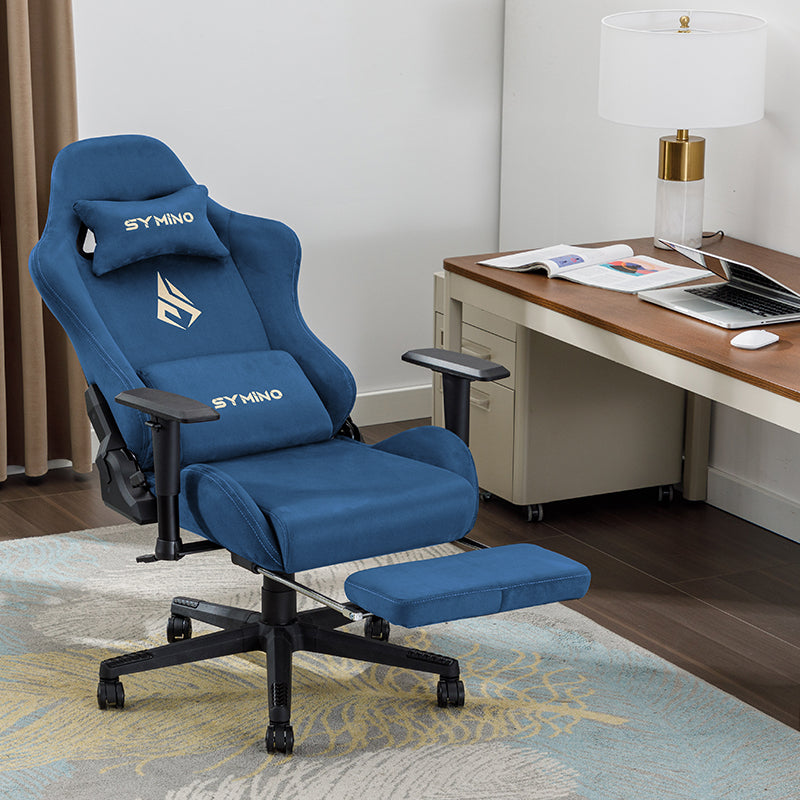 SYMINO Breathable Gaming Chair with Footrest, Adjustable and Rotating, Blue