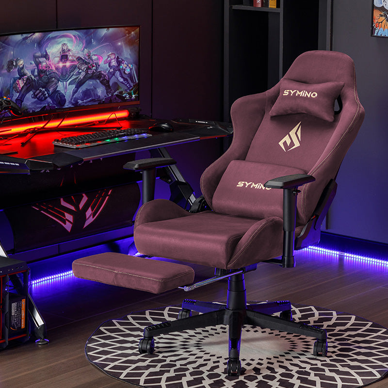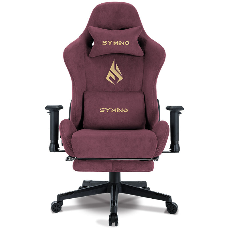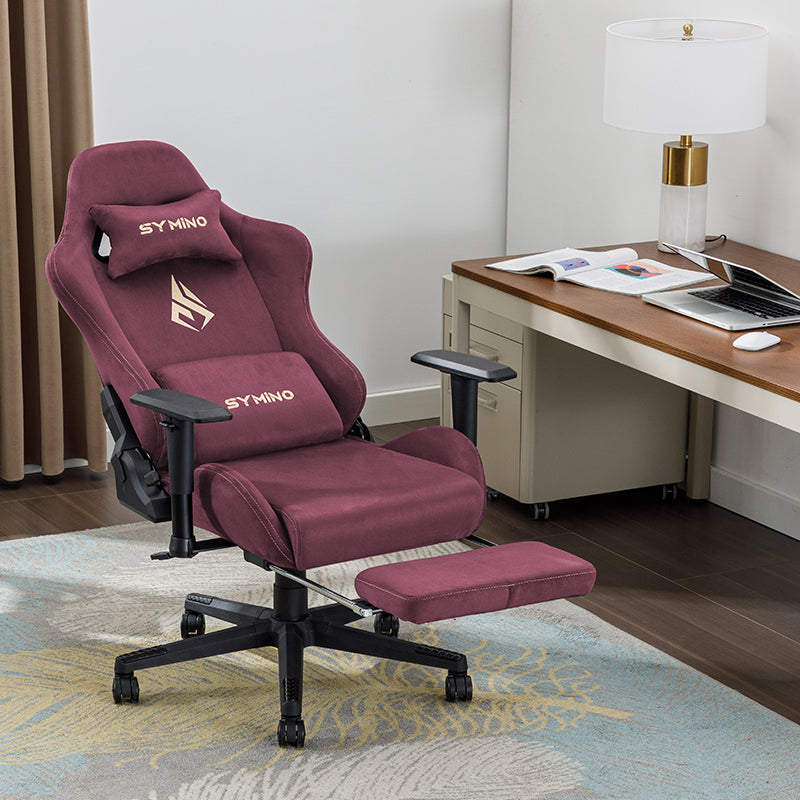 SYMINO Breathable Gaming Chair with Footrest, Adjustable and Rotating, Red